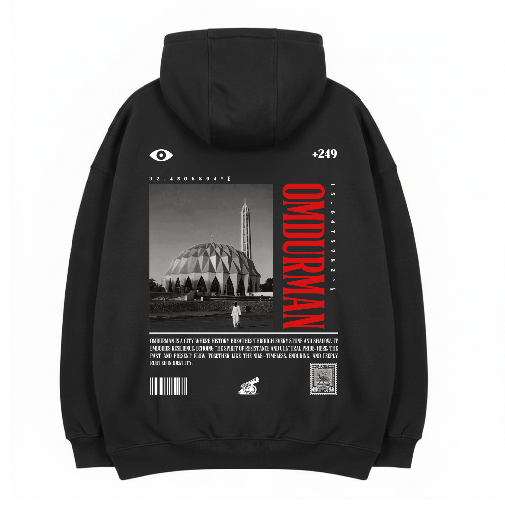 The back print carries a powerful passage: “Omdurman is a city where history breathes through every stone and shadow. It embodies resilience, echoing the spirit of resistance and cultural pride. Here, the past and present flow together like the Nile—timeless, enduring, and deeply rooted in identity.”